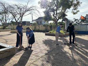ĐOÀN VIÊN THANH NIÊN RA QUÂN DỌN DẸP VỆ SINH TRƯỜNG HỌC HƯỞNG ỨNG BẦU CỬ QUỐC HỘI KHÓA XVI